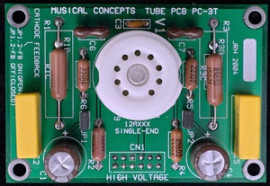 PC-3T: Grounded cathode amplifier for 12V 9-pin mini tubes. Standard tube is 12AU7/ECC82/ECC802S. Many 12V types usable with adjustments.