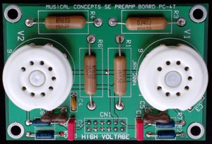 PC-4T: Grounded Cathode/Follower amplifier for 6V tubes. Standard tube is 6DJ8/6922. 6N6P, 6N1P, 6CG7/6FQ7. Many other 6V types can be used.