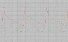 WHY IS CRC MODE………….so special? First the transformer voltage is rectified to produce (+) and (-) DC voltages. This reduces the extreme pulses from your rectifier to much lower pulses on the first capacitor. Red line is typical of most solid-state amps power supplies. Second you have a large wattage but low R value resistor followed by another capacitor. This RC section greatly reduces the spiky nature seen at the first capacitor producing a near perfect sine wave output devoid of any spikes. It’s the spikes that give you an unidentifiable discomfort. Don’t get me wrong our standard power supplies sound very fine but your ear/brain will love the smoother CRC sound often referred to as a tube-like quality. Note that almost all tube amplifiers have significant CRC and often CLC power supplies serving the output stage. The graphic shows the impact of the second RC section in green compared to the voltage at the first cap in red. Graph is amplitude on the left and time on the bottom. Our new Musical Design M4 amplifier operates in CRCRC mode with an additional RC section for even smoother qualities. The green line becomes a nearly straight line.