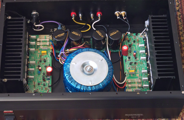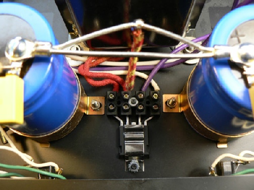 Just to the left of the power transformer you see the Ixys Hyper-Fred rectifier. Then there are the multiple bypass caps on the main power cans.